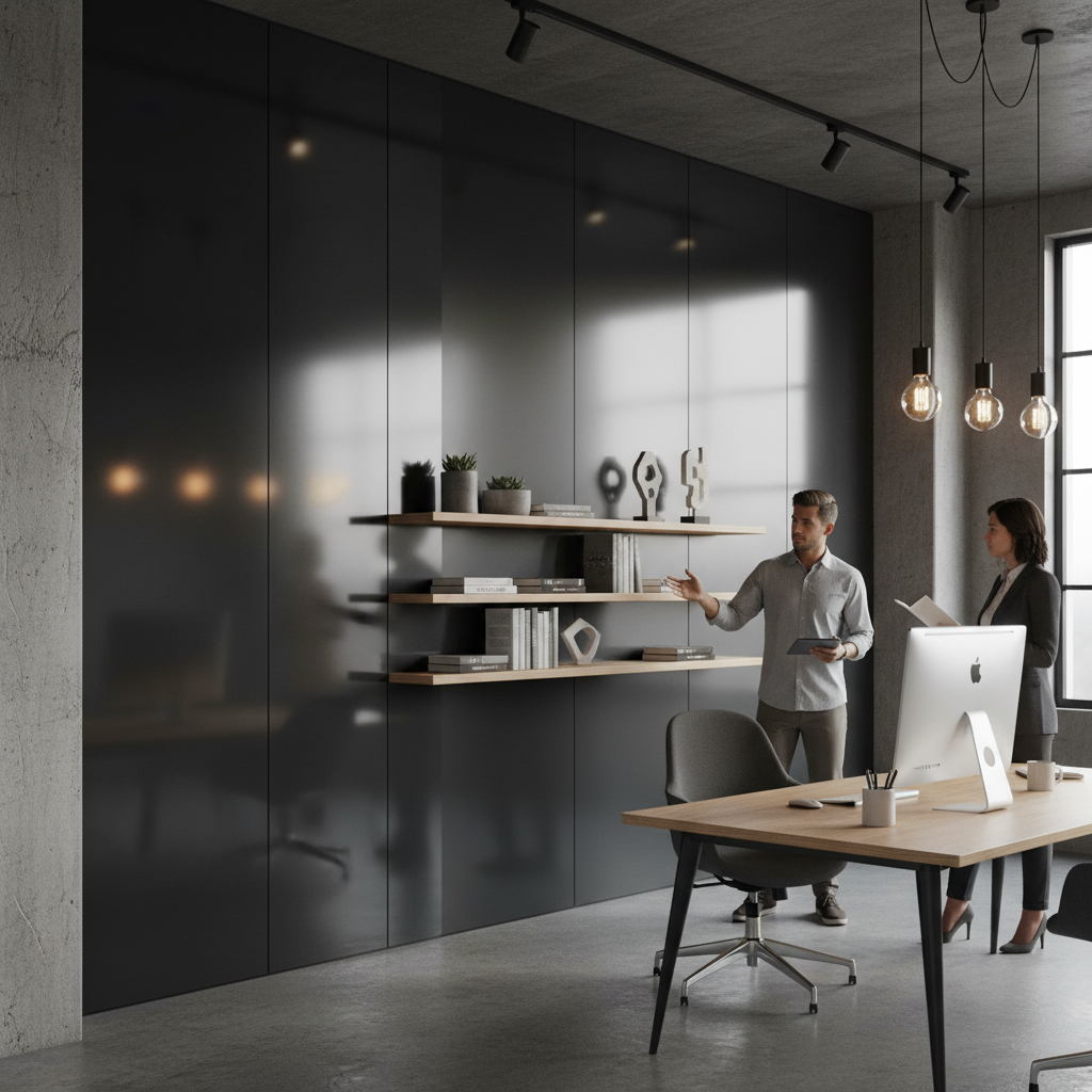 This High-Performance Jet Black Aluminium Composite Panel Sheet is a composite panel that features two 0.3 mm high-quality aluminium surface layers combined with a UV resistant polyethylene core. The sheet comes with a protective film on both sides to ensure its quality during handling. Both the front and reverse panel surfaces are stove lacquered with a Jet Black finish, providing a sleek and professional appearance.