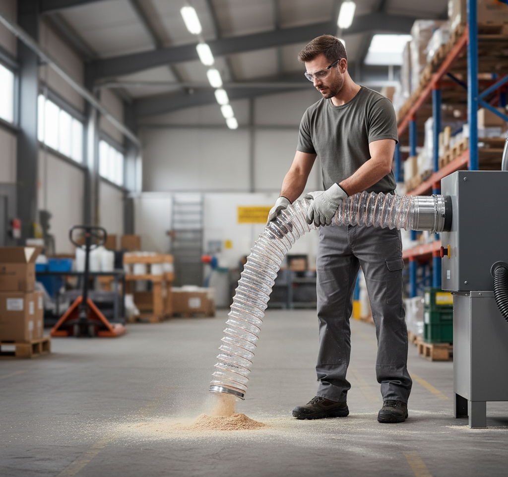 - What materials is the hose resistant to? The hose has good abrasion resistance and is designed for use with dust, chips, and abrasive materials.