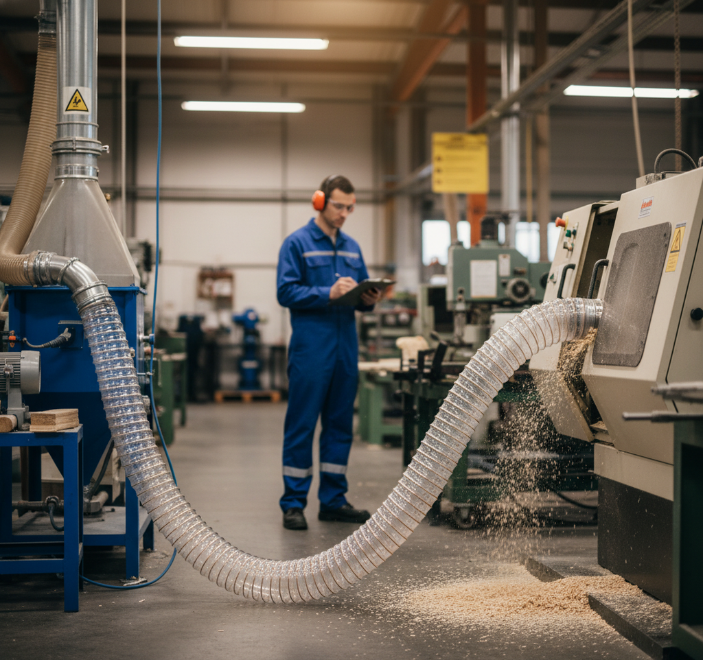 This premium polyurethane hose is designed with a copper-plated steel spiral, making it ideal for the suction and transport of dust, chips, and abrasive materials. The hose offers exceptional flexibility, high abrasion resistance, and good weathering resistance, making it suitable for various industrial applications. It functions effectively within a temperature range of -40 to 90°C.